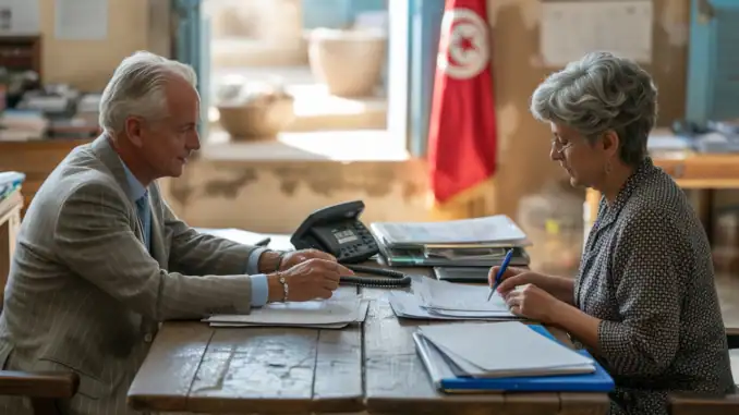 Professionelles Beratungsgespräch für den Umzug nach Djerba, inklusive rechtlicher und finanzieller Planung, um den Neuanfang auf der Insel zu realisieren.